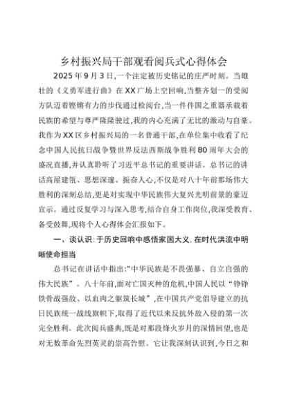 / 【七哥公文】2025年:乡村振兴局干部观看阅兵式心得体会+更多免费公文+VX:QiGeGongWen2024