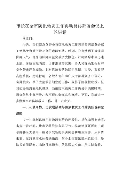 / 【七哥公文】2025年:市长在全市防汛救灾工作再动员再部署会议上的讲话+更多免费公文+VX:QiGeGongWen2024