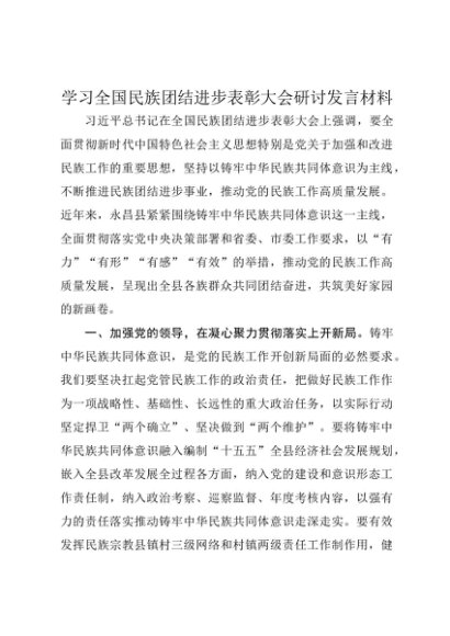 / 【七哥公文】2025年:学习全国民族团结进步表彰大会研讨发言材料+更多免费公文+VX:QiGeGongWen2024