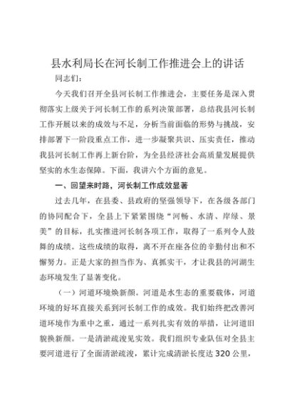 / 【七哥公文】2025年:县水利局长在河长制工作推进会上的讲话+更多免费公文+VX:QiGeGongWen2024