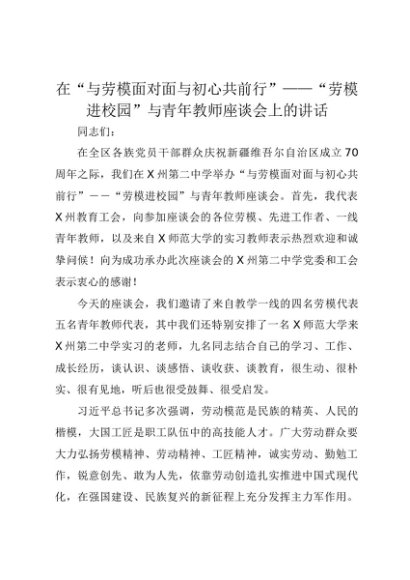 【七哥公文】2025年:在“与劳模面对面与初心共前行”——“劳模进校园”与青年教师座谈会上的讲话+更多免费公文+VX:QiGeGongWen2024