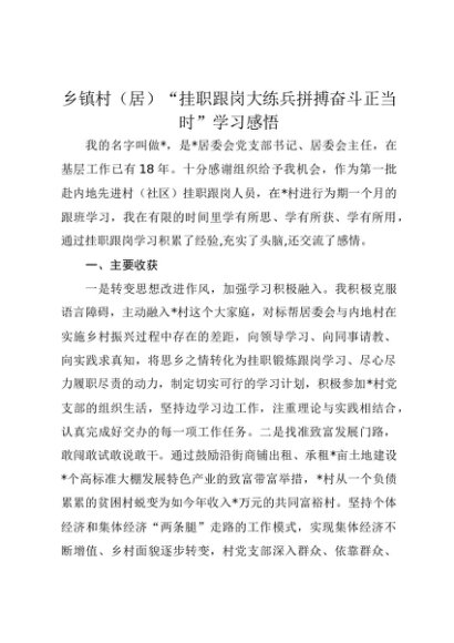 【七哥公文】2025年:乡镇村(居)“挂职跟岗大练兵 拼搏奋斗正当时”学习感悟心得+更多免费公文+VX:QiGeGongWen2024