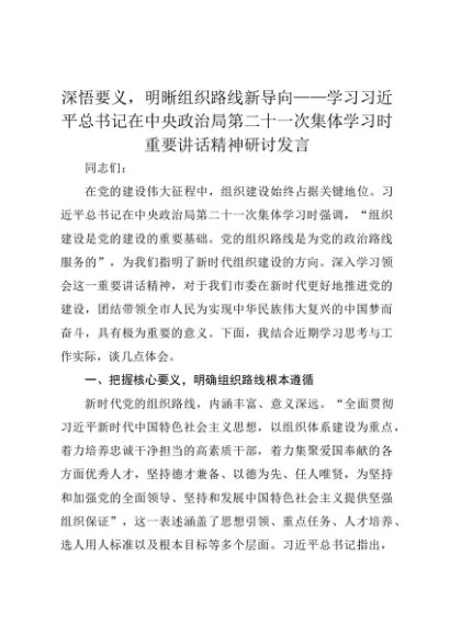 【七哥公文】2025年:深悟要义,明晰组织路线新导向——学习习近平总书记在中央政治局第二十一次集体学习时重要讲话精神研讨发言+更多免费公文+VX:QiGeGongWen2024