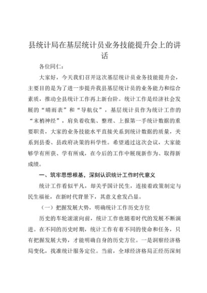 / 【七哥公文】2025年:县统计局在基层统计员业务技能提升会上的讲话+更多免费公文+VX:QiGeGongWen2024