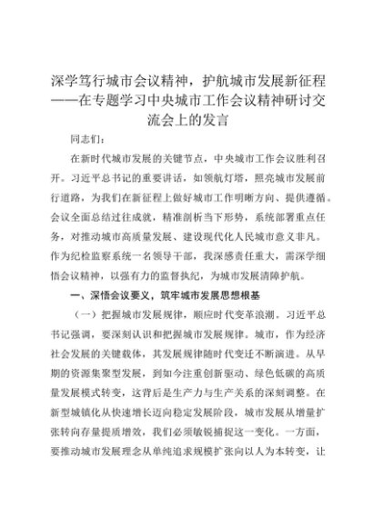 【七哥公文】2025年:深学笃行城市会议精神,护航城市发展新征程——在专题学习中央城市工作会议精神研讨交流会上的发言+更多免费公文+VX:QiGeGongWen2024