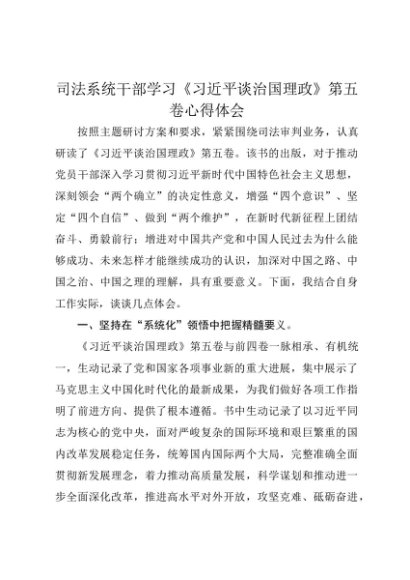 【七哥公文】2025年:司法系统干部学习《习近平谈治国理政》第五卷心得体会+更多免费公文+VX:QiGeGongWen2024