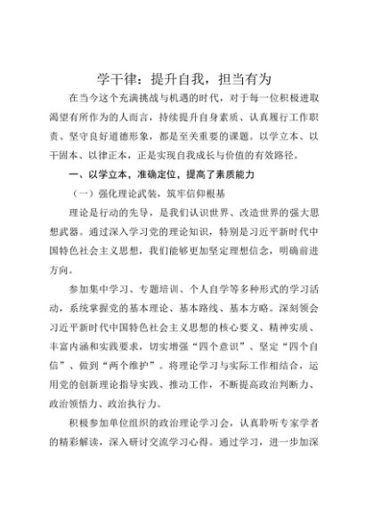 【七哥公文】2025年:学干律发言:提升自我,担当有为+更多免费公文+VX:QiGeGongWen2024