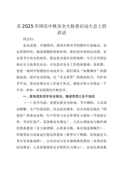 / 【七哥公文】2025年:在2025年国庆中秋安全大检查启动大会上的讲话+更多免费公文+VX:QiGeGongWen2024