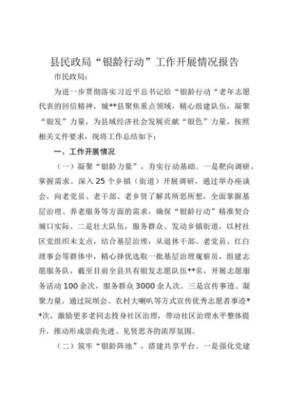 / 【七哥公文】2025年:县民政局“银龄行动”工作开展情况报告+更多免费公文+VX:QiGeGongWen2024