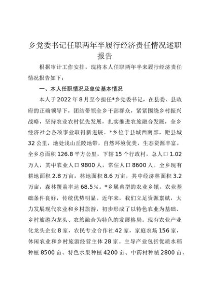 / 【七哥公文】2025年:乡党委书记任职两年半履行经济责任情况述职报告+更多免费公文+VX:QiGeGongWen2024