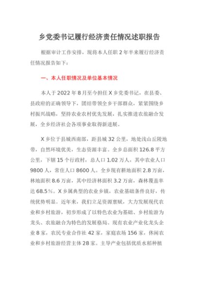/ 【七哥公文】2025年:乡党委书记履行经济责任情况述职报告+更多免费公文+VX:QiGeGongWen2024