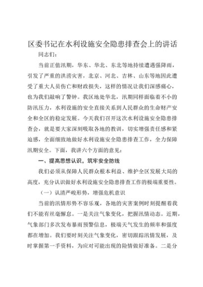 / 【七哥公文】2025年:区委书记在水利设施安全隐患排查会上的讲话+更多免费公文+VX:QiGeGongWen2024