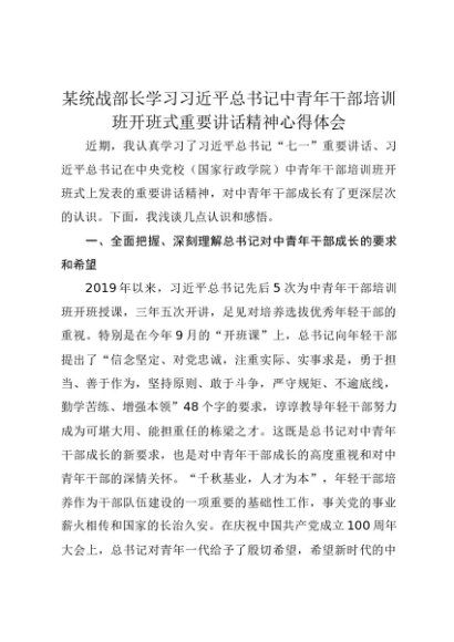 【七哥公文】2025年:某统战部长学习习近平总书记中青年干部培训班开班式重要讲话精神心得体会+更多免费公文+VX:QiGeGongWen2024