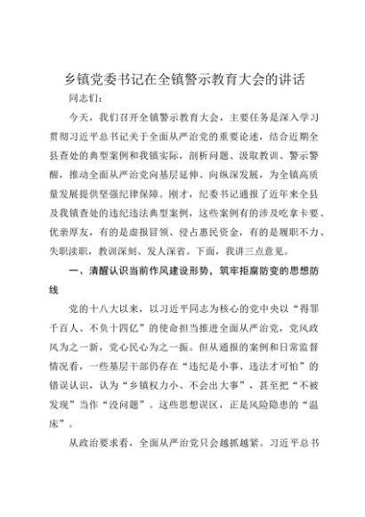 / 【七哥公文】2025年:乡镇党委书记在全镇警示教育大会的讲话+更多免费公文+VX:QiGeGongWen2024