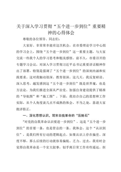 【七哥公文】2025年:关于深入学习贯彻“五个进一步到位”重要精神的心得体会+更多免费公文+VX:QiGeGongWen2024
