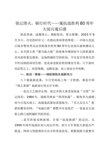 【七哥公文】2025年:铭记烽火,砺行时代 ——观抗战胜利80周年大阅兵观后感心得体会+更多免费公文+VX:QiGeGongWen2024