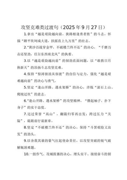 / 【七哥公文】2025年:攻坚克难类过渡句(2025年9月27日)+更多免费公文+VX:QiGeGongWen2024