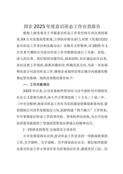 / 【七哥公文】2025年:国企2025年度意识形态工作自查报告+更多免费公文+VX:QiGeGongWen2024