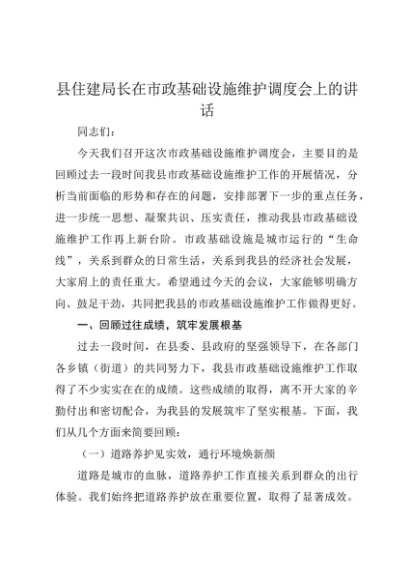 / 【七哥公文】2025年:县住建局长在市政基础设施维护调度会上的讲话+更多免费公文+VX:QiGeGongWen2024