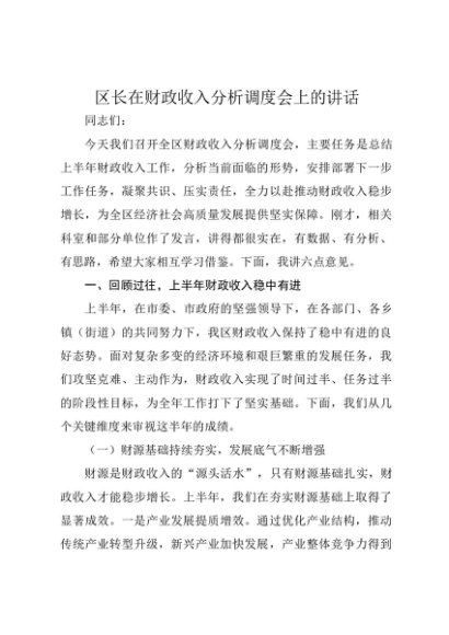 / 【七哥公文】2025年:区长在财政收入分析调度会上的讲话+更多免费公文+VX:QiGeGongWen2024