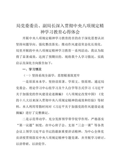 【七哥公文】2025年:局党委委员、副局长深入贯彻中央八项规定精神学习教育心得体会+更多免费公文+VX:QiGeGongWen2024