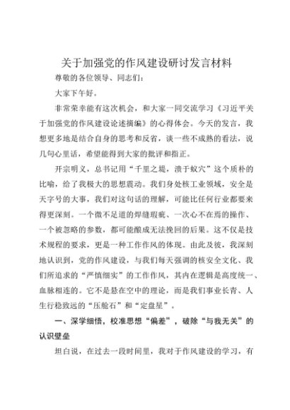 【七哥公文】2025年:关于加强党的作风建设研讨发言材料(学习心得体会)+更多免费公文+VX:QiGeGongWen2024