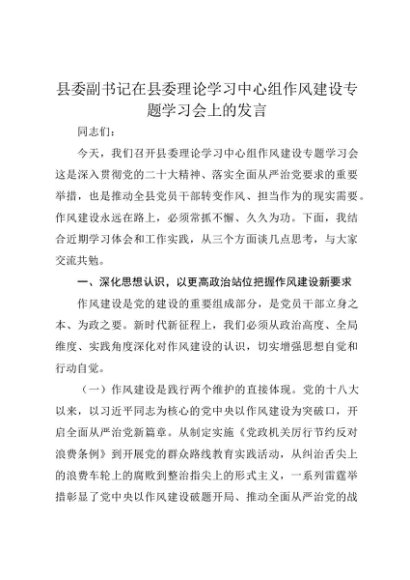 【七哥公文】2025年:县委副书记在县委理论学习中心组作风建设专题学习会上的发言+更多免费公文+VX:QiGeGongWen2024
