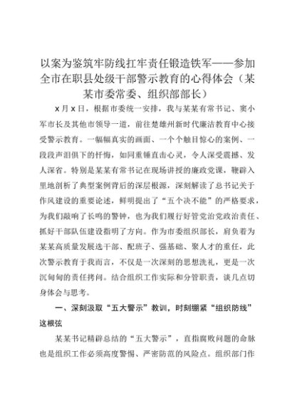 【七哥公文】2025年:以案为鉴筑牢防线扛牢责任锻造铁军——参加全市在职县处级干部警示教育的心得体会(某某市委常委、组织部部长)+更多免费公文+VX:QiGeGongWen2024