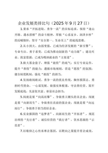 / 【七哥公文】2025年:企业发展类排比句(2025年9月27日)+更多免费公文+VX:QiGeGongWen2024