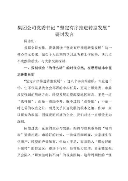 / 【七哥公文】2025年:集团公司党委书记“坚定有序推进转型发展”研讨发言+更多免费公文+VX:QiGeGongWen2024