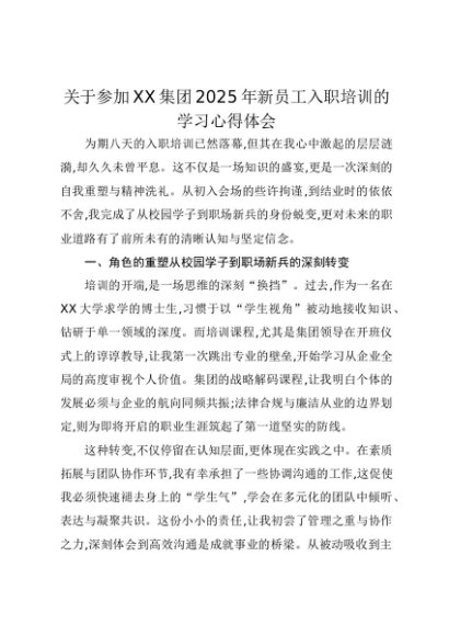 【七哥公文】2025年:关于参加XX集团2025年新员工入职培训的学习心得体会+更多免费公文+VX:QiGeGongWen2024
