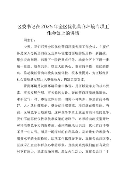 【七哥公文】2025年:区委书记在2025年全区优化营商环境专项工作会议上的讲话+更多免费公文+VX:QiGeGongWen2024