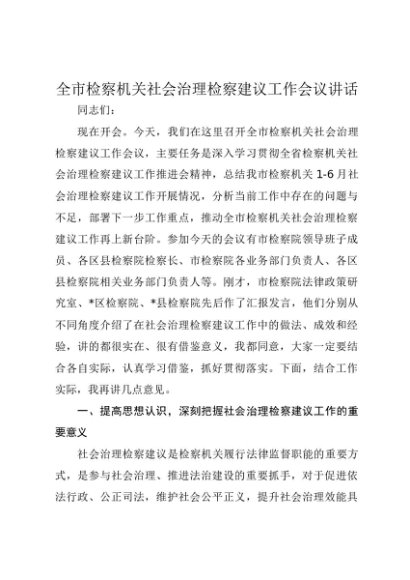 / 【七哥公文】2025年:全市检察机关社会治理检察建议工作会议讲话+更多免费公文+VX:QiGeGongWen2024