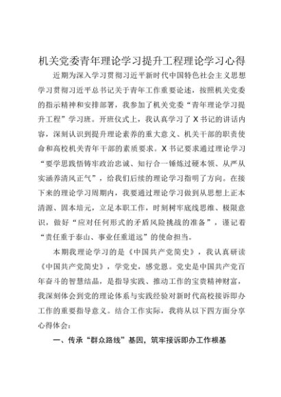 【七哥公文】2025年:机关党委青年理论学习提升工程理论学习心得+更多免费公文+VX:QiGeGongWen2024