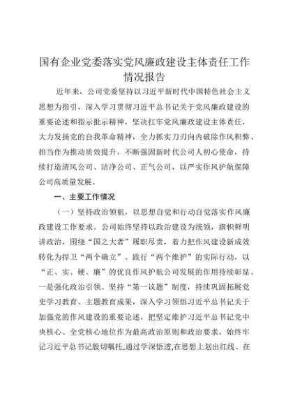 【七哥公文】2025年:国有企业党委落实党风廉政建设主体责任工作情况报告+更多免费公文+VX:QiGeGongWen2024
