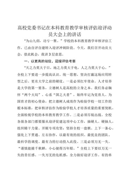 【七哥公文】2025年:高校党委书记在本科教育教学审核评估迎评动员大会上的讲话+更多免费公文+VX:QiGeGongWen2024