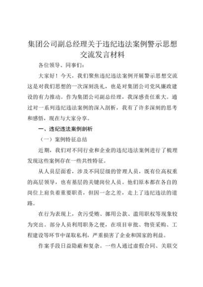 【七哥公文】2025年:集团公司副总经理关于违纪违法案例警示思想交流发言材料+更多免费公文+VX:QiGeGongWen2024
