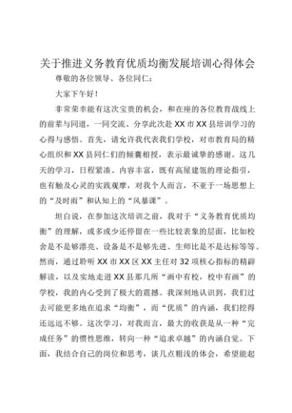 / 【七哥公文】2025年:关于推进义务教育优质均衡发展培训心得体会+更多免费公文+VX:QiGeGongWen2024