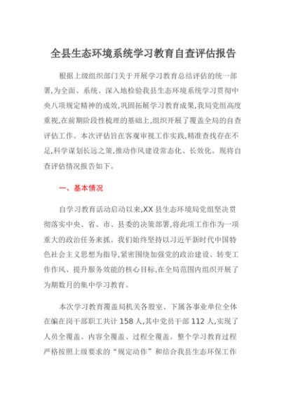【七哥公文】2025年:全县生态环境系统贯彻中央八项规定精神学习教育自查评估报告+更多免费公文+VX:QiGeGongWen2024