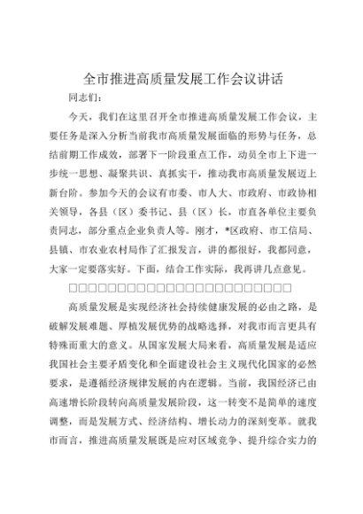 【七哥公文】2025年:全市推进高质量发展工作会议讲话+更多免费公文+VX:QiGeGongWen2024