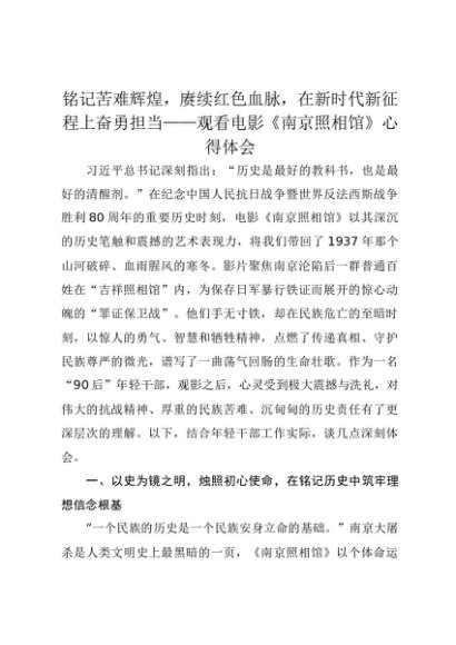 【七哥公文】2025年:铭记苦难辉煌,赓续红色血脉,在新时代新征程上奋勇担当——观看电影《南京照相馆》心得体会+更多免费公文+VX:QiGeGongWen2024