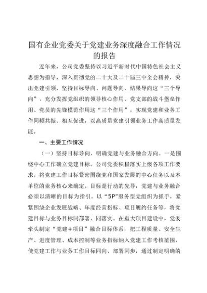 / 【七哥公文】2025年:国有企业党委关于党建业务深度融合工作情况的报告+更多免费公文+VX:QiGeGongWen2024