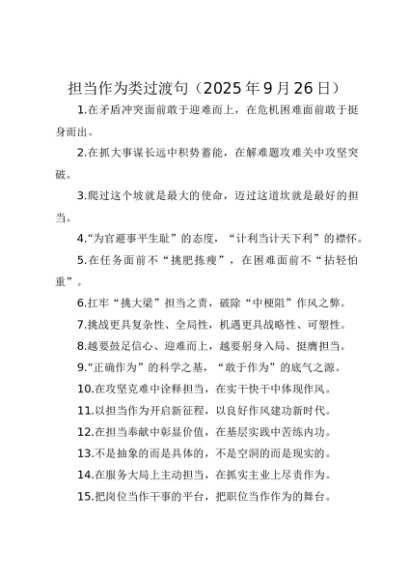 / 【七哥公文】2025年:担当作为类过渡句(2025年9月26日)+更多免费公文+VX:QiGeGongWen2024