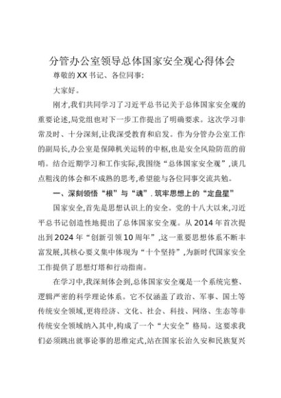 【七哥公文】2025年:分管办公室领导总体国家安全观心得体会+更多免费公文+VX:QiGeGongWen2024