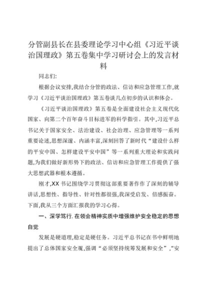 【七哥公文】2025年:分管副县长在县委理论学习中心组《习近平谈治国理政》第五卷集中学习研讨会上的发言材料+更多免费公文+VX:QiGeGongWen2024