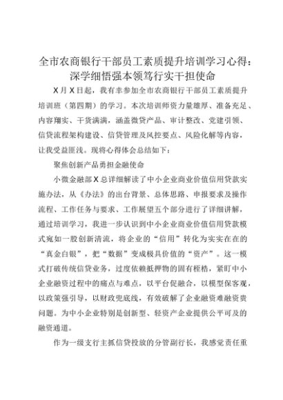 【七哥公文】2025年:全市农商银行干部员工素质提升培训学习心得:深学细悟强本领笃行实干担使命+更多免费公文+VX:QiGeGongWen2024