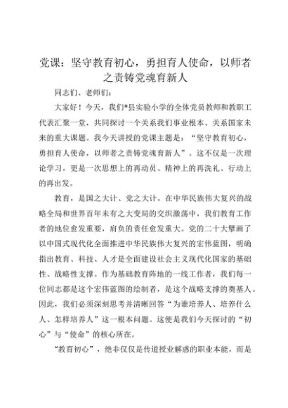 【七哥公文】2025年:党课讲稿:坚守教育初心,勇担育人使命,以师者之责铸党魂育新人+更多免费公文+VX:QiGeGongWen2024