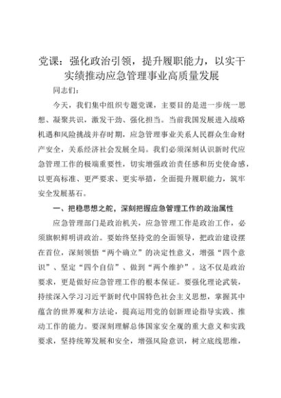 【七哥公文】2025年:党课讲稿:强化政治引领,提升履职能力,以实干实绩推动应急管理事业高质量发展+更多免费公文+VX:QiGeGongWen2024