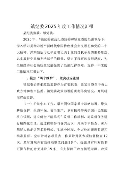 【七哥公文】2025年:镇纪委2025年度工作情况汇报+更多免费公文+VX:QiGeGongWen2024