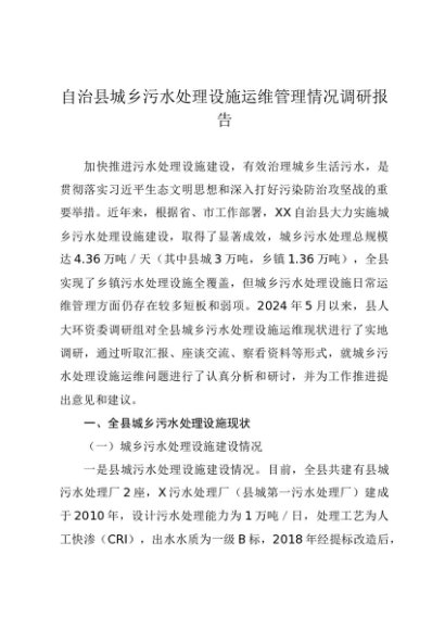 / 【七哥公文】2025年:自治县城乡污水处理设施运维管理情况调研报告+更多免费公文+VX:QiGeGongWen2024